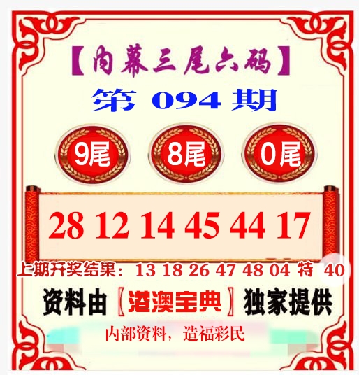 | 094期:绝杀四尾【3241尾】开?00中 |